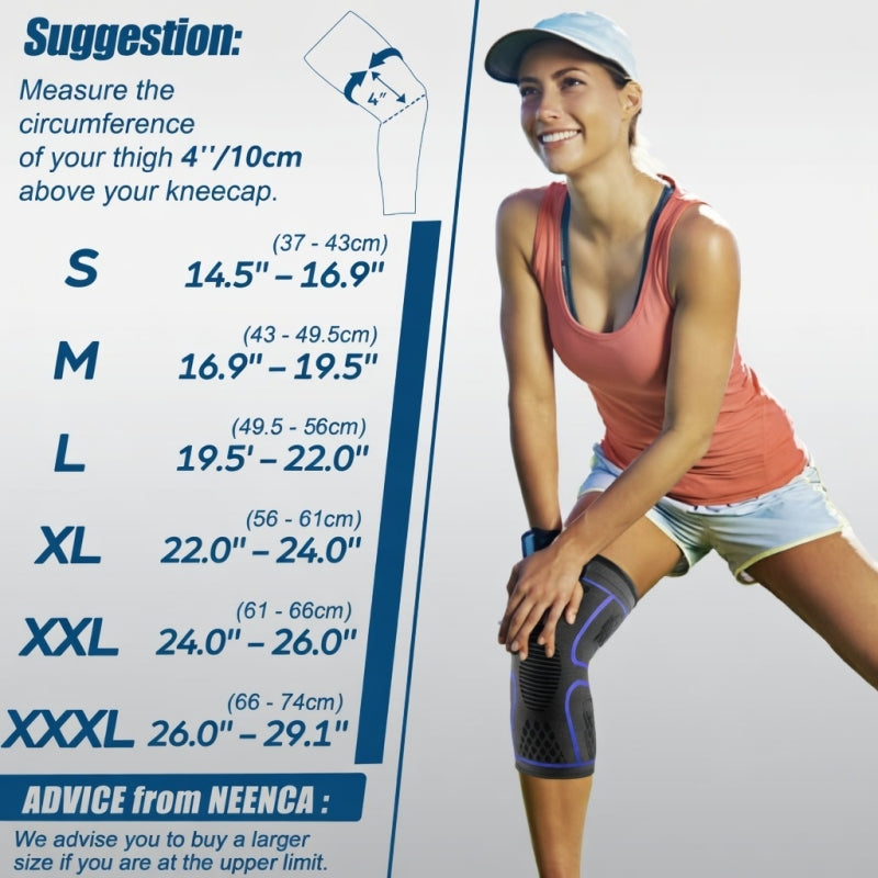 - NEENCA KNEE SUPPORT TECHNOLOGY—With high-elastic and breathable compression fabric to 360° perfectly fit your knee curve, It will help improve poor circulation & increase oxygen to optimize the natural healing process, helping increase blood circulation, and reduce varicose veins, inflammation for leg or knee pain relief from acute or chronic joint injuries. It will strengthen side support and maintains joint stability, keeping your knee warm, BEST CHOICE for sports protection and pain recovery!