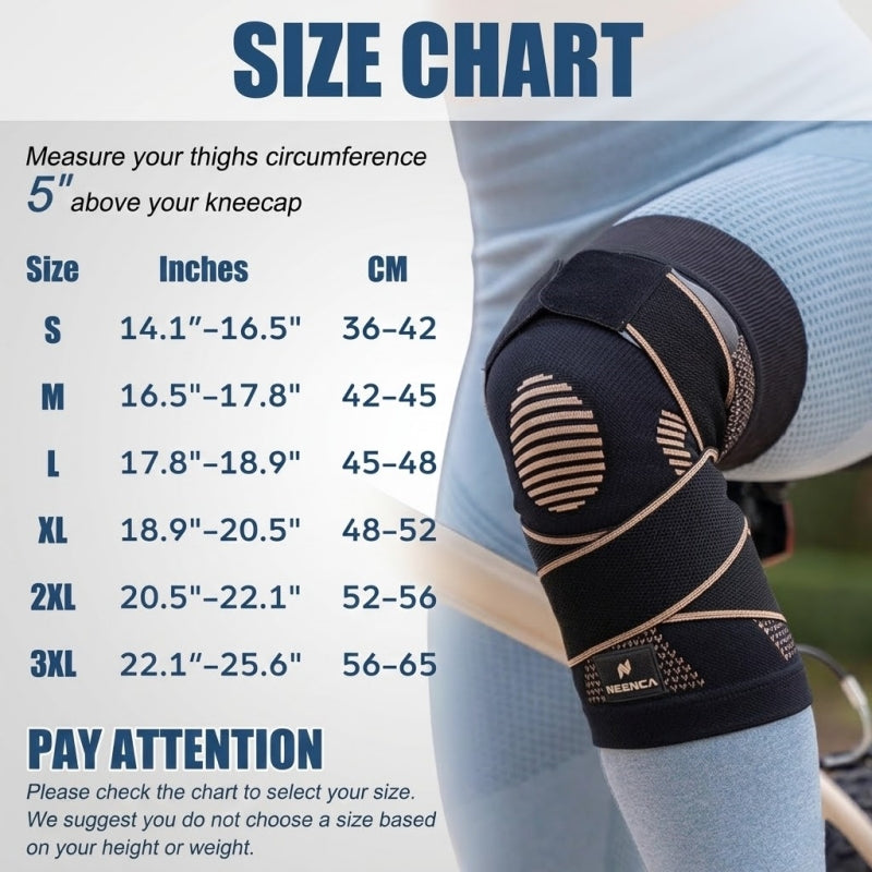 - NEENCA Copper Ions Infused Technology— 60% Copper Ions Infused Fiber + 21% Nylon +16% Polyester. 3D structure of woven, High-precision cutting technology of knitting. With high-elastic tight and breathable compression fabric to 360° perfectly fit your kneecap curve. It will strengthen side support and maintains joint stability, effectively disperses pressure, keeping your knee warm, lubricating your joints. BEST CHOICE for sports protection and pain recovery.
